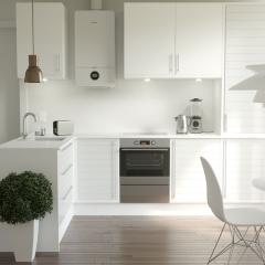 Modernus kondensacinis dujinis katilas BOSCH, naudojamas SAURIDA sistemose, leidžia reguliuoti šildymą net telefonu – patogu ir paprasta, ypač jei gyvenate atokiau ar žiemą kuriam laikui išvykstate iš namų.