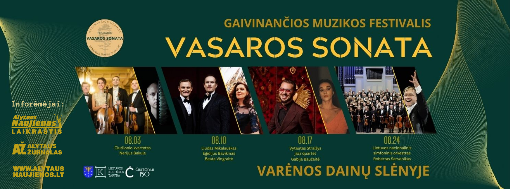 19 val. Profesionaliosios muzikos festivalio „Vasaros sonata“ atidarymo koncertas su Čiurlionio kvartetu ir Nerijumi Bakula (akordeonas) Varėnos Dainų slėnyje. Su bilietais.