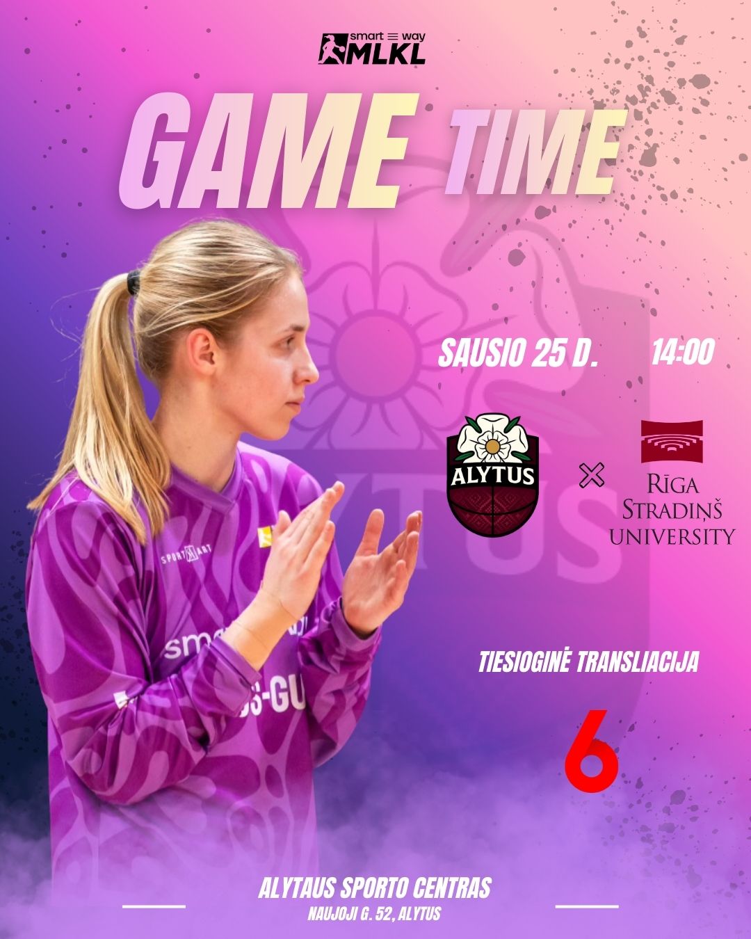 14 val. Baltijos moterų krepšinio lygos (BMKL) ASC arenoje (Naujoji g.). Susitinka: „Alytus-Gut.lt“ ir Rygos RSU.