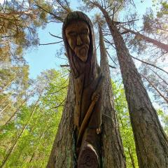 Vykstantiems iš sostinės rekomenduojame stabtelėti Trakų krašto miškų parke. Prie pat kelio Vilnius-Varėna įrengtas skveras poilsiui leis atgauti kvapą ir pasigrožėti miškininkų išdrožtomis, meniškomis skulptūromis, kurių kiekviena atspindi įvairias žmogaus veiklas miške skirtingais metų laikais. Nedidelis skverelis yra papildytas informaciniais stendais, tad naudingai ir prasmingai praleistas laikas – garantuotas!